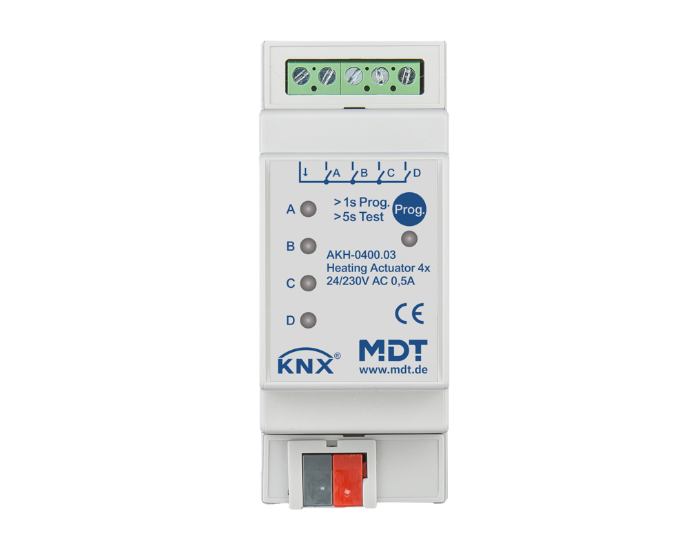 Actionneur de chauffage 4 sorties KNX, 2 modules, 24-230 V CA.