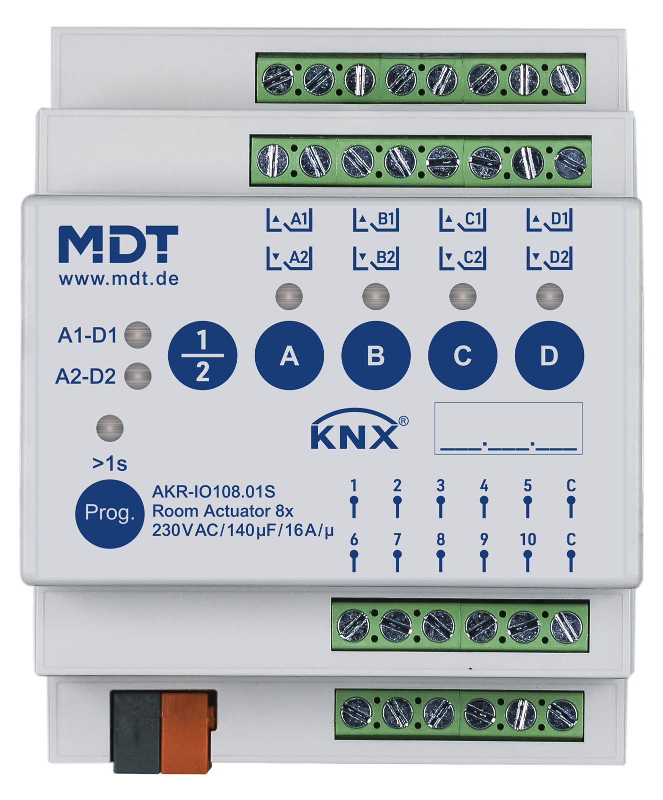 Contrôleur Universel KNX 8 sorties, 10 entrées, 4 modules, 16 A, 140 µF