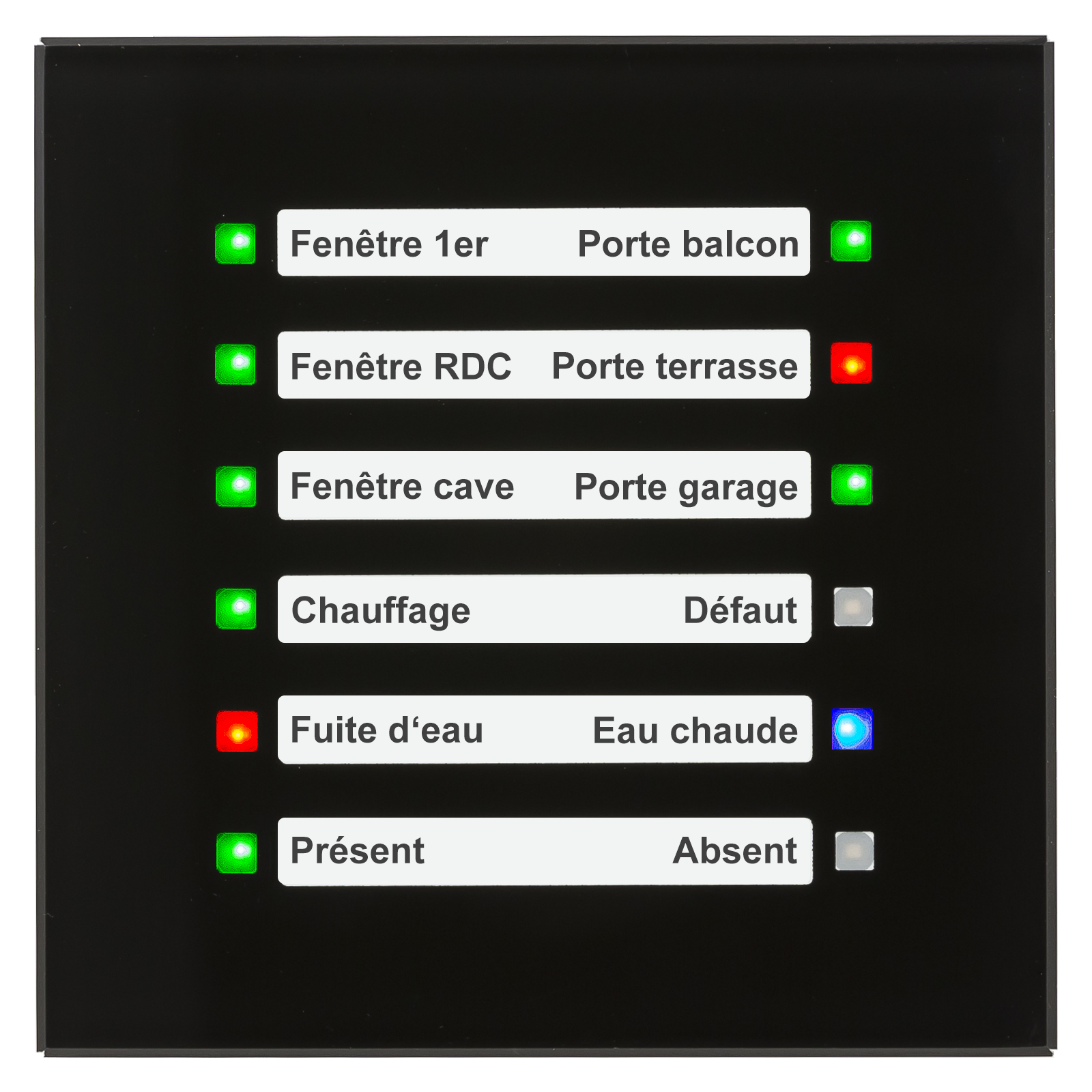 Écran LED en finition verre KNX, noir. Avec 12 LED RGB. Partie arrière noire.