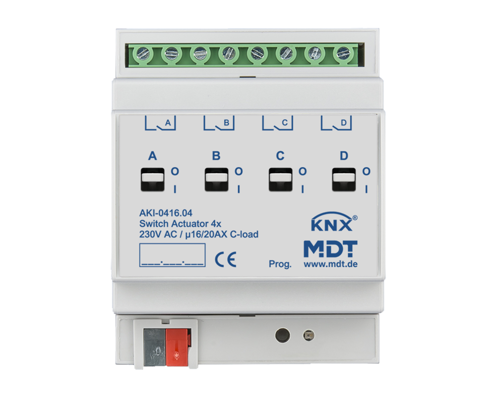 Actionneur 4 sorties KNX, 4 modules, 16/20 A, 230 V CA, charge capacitive
