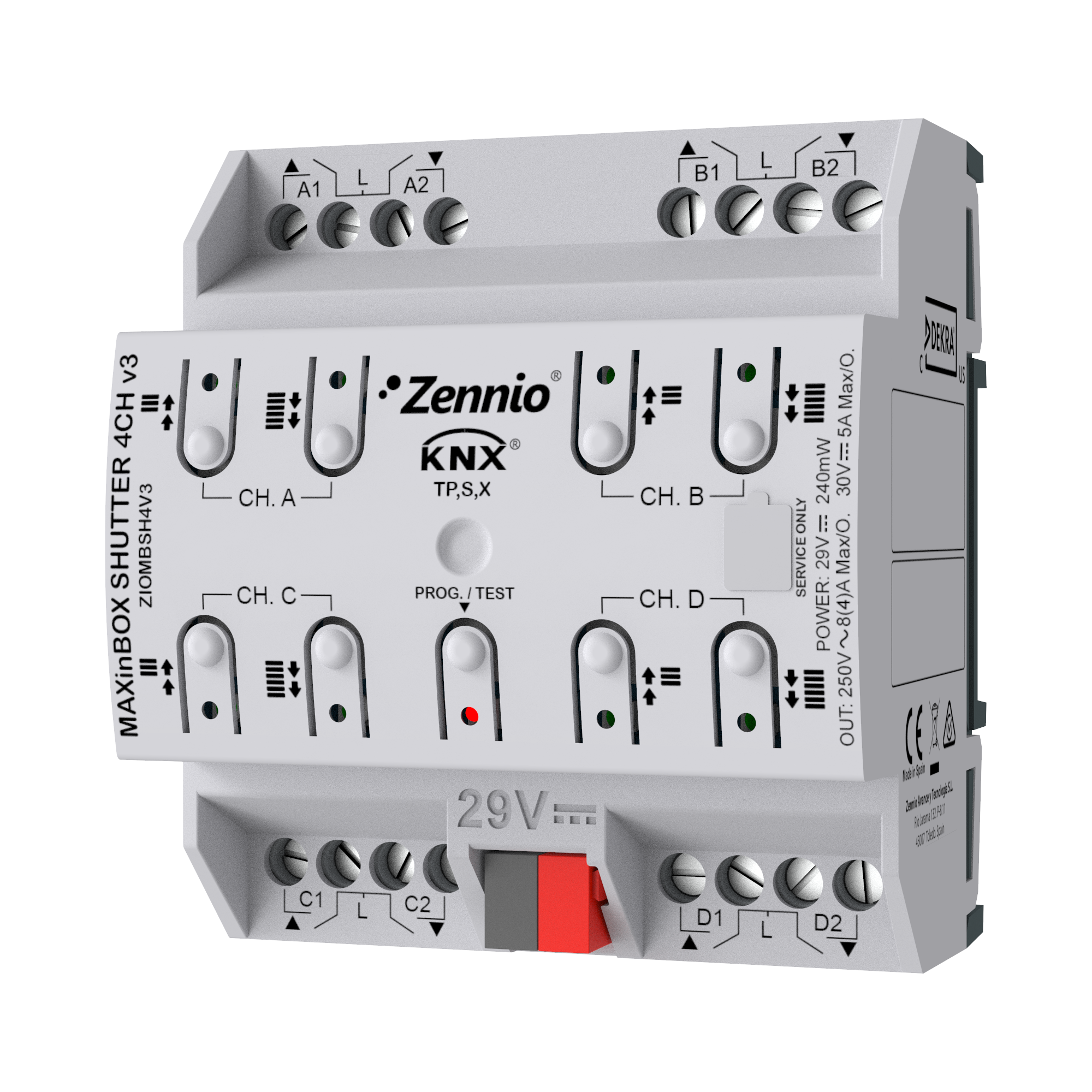 MAXinBOX SHUTTER 4CH v3. Actionneur de volet 4 canaux avec KNX Secure
