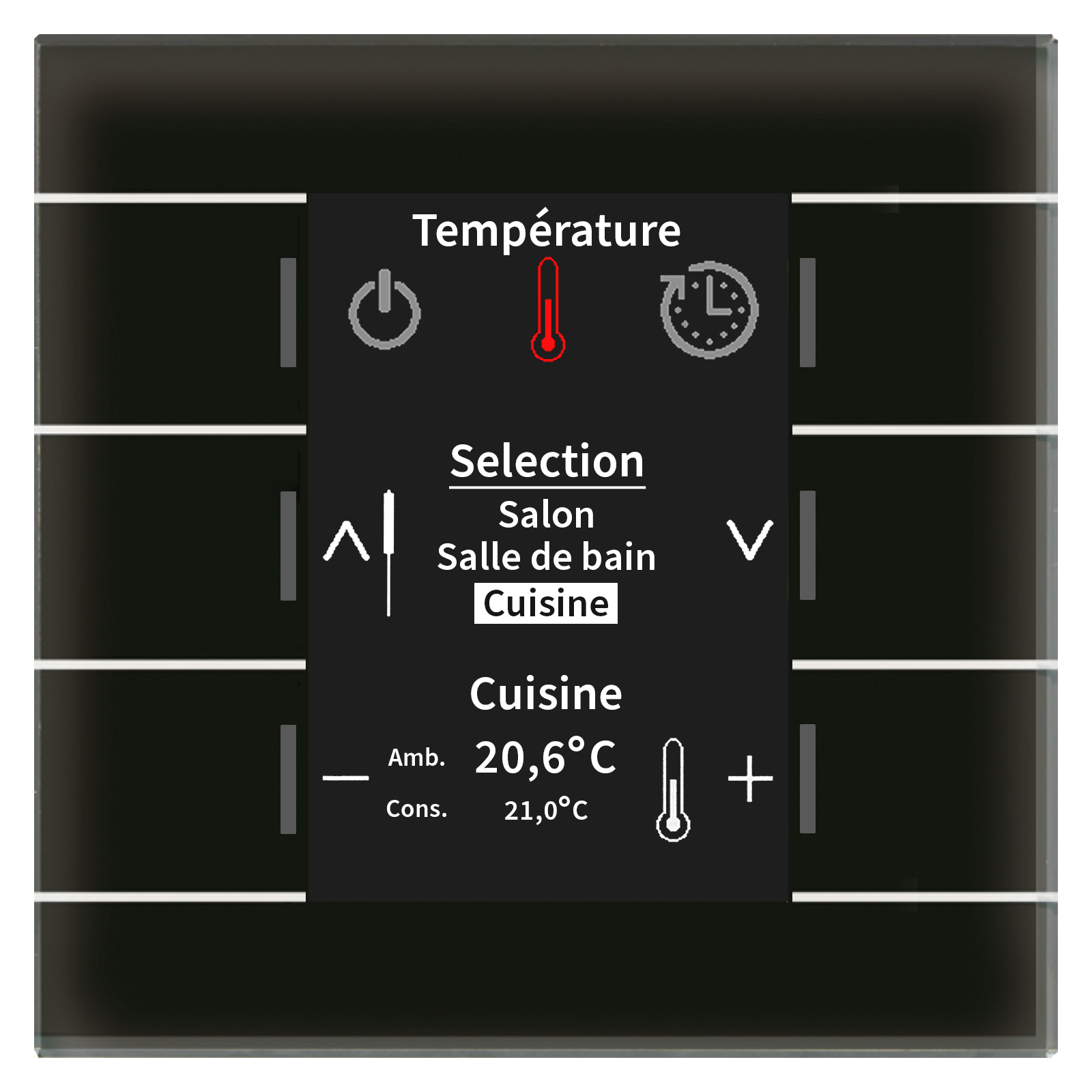 Centrale de commande Smart en finition verre KNX avec écran couleur, noir.
