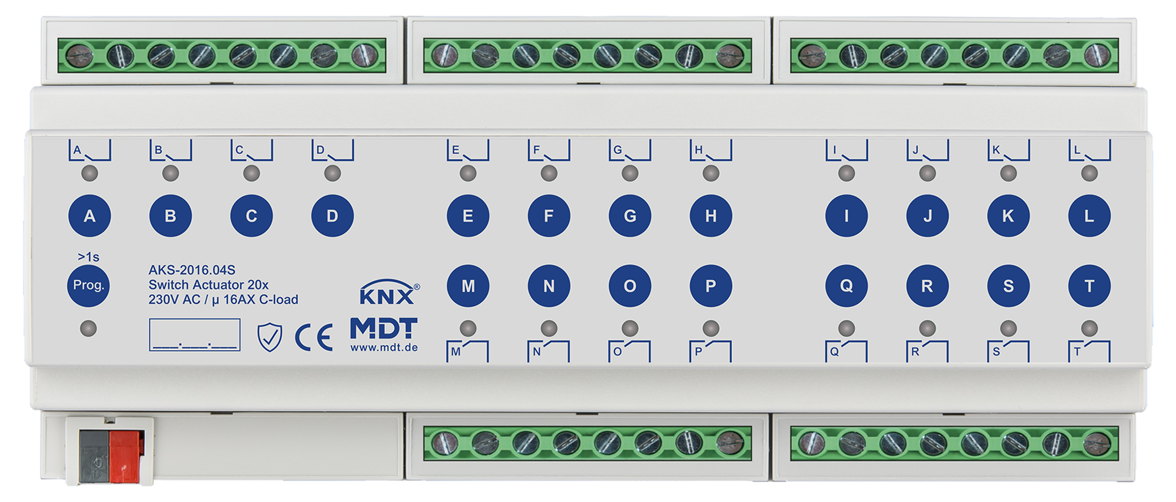 Actionneur 20 sorties KNX 12 modules, 16 A, 230 VCA, charge capacitive, standard