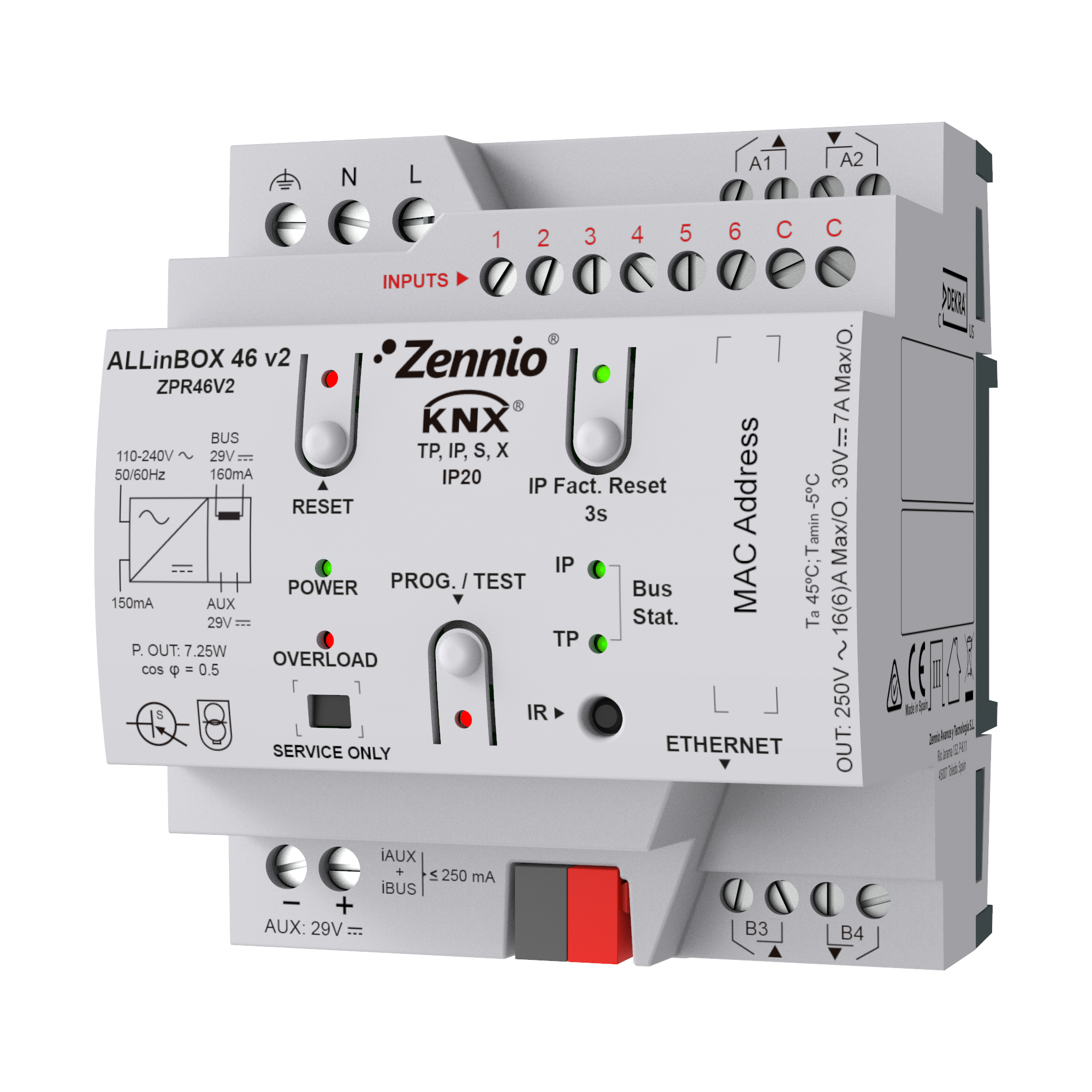 ALLinBOX 46 v2. Dispositif multifonction avec source d'alimentation KNX, inte...